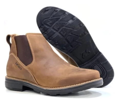Este modelo é confeccionado em couro legítimo, possui elásticos laterais para facilitar o calce, e um solado de borracha antiderrapante que garante segurança e durabilidade.